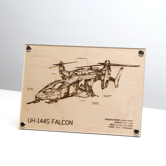 Laser Engraved Plaque – UH-144S Falcon Diagram | LayaBoard Art Inspired by Halo